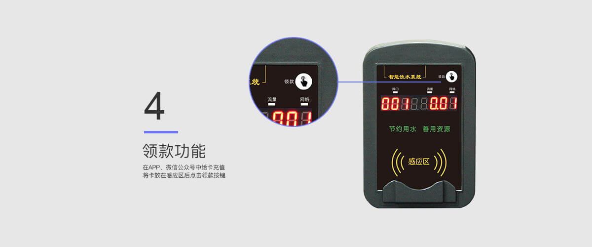 - 可接入微信公眾號(hào),無(wú)人值守,用戶自助充值。支持領(lǐng)款和消費(fèi)的一體機(jī)。